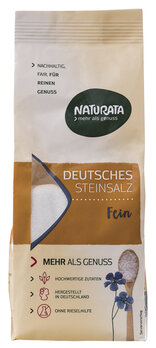 Das Steinsalz aus Deutschland wird nicht raffiniert oder gebleicht und bleibt so besonders naturbelassen. Durch einen hohen Trocknungsgrad bleibt die Rieselfähigkeit erhalten und das Salz klumpt nicht, sodass Antiklumpmittel und Rieselhilfen nicht eingesetzt werden. Salz ist kein landwirtschaftliches Produkt und daher nicht innerhalb der EG-Bio-Verordnung geregelt. Salz ist daher nicht in Bio-Qualität verfügbar.